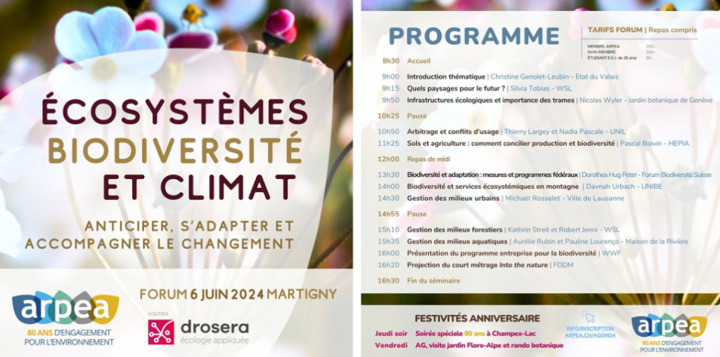 Vous êtes membre de l’ARPEA ou comptez le devenir ? Joignez-vous à nous pour une soirée spéciale anniversaire et nuitée à Champex-Lac ! Le lendemain, un programme festif fait de randonnée et de botanique fera suite à notre assemblée générale. Plus d’information ici.
