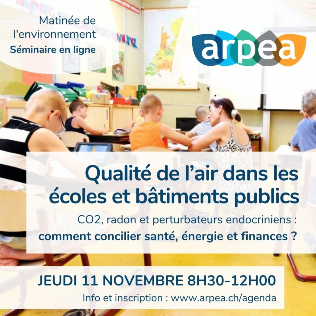 Ce séminaire en ligne explorera l’essentiel des problématiques liées à la qualité de l’air dans les écoles, dans les bâtiments publics et de formation. CO2, radon, polluants chimiques ou encore perturbateurs endocriniens : des solutions seront présentées qui peuvent être mises en place lors de la construction, pendant l’utilisation ou encore au moment d’entreprendre des rénovations. Dans son ensemble, cette matinée nous conduira également à réfléchir sur la conciliation entre santé, environnement/énergie et finances.